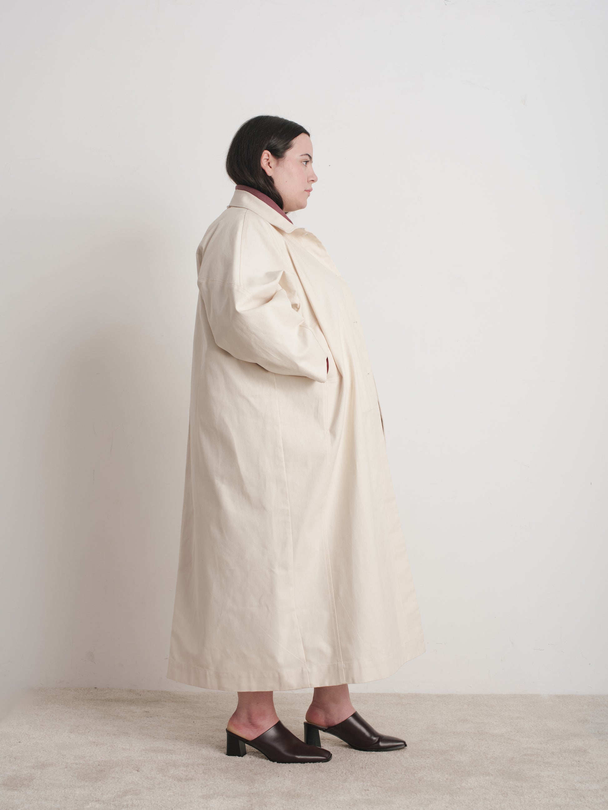 This pattern was created for woven coat or jacket weight fabrics; twill/canvas/oilskin/wool. However, we believe you can make everything out of anything, feel free to contact us for advice if you’re feeling adventurous.