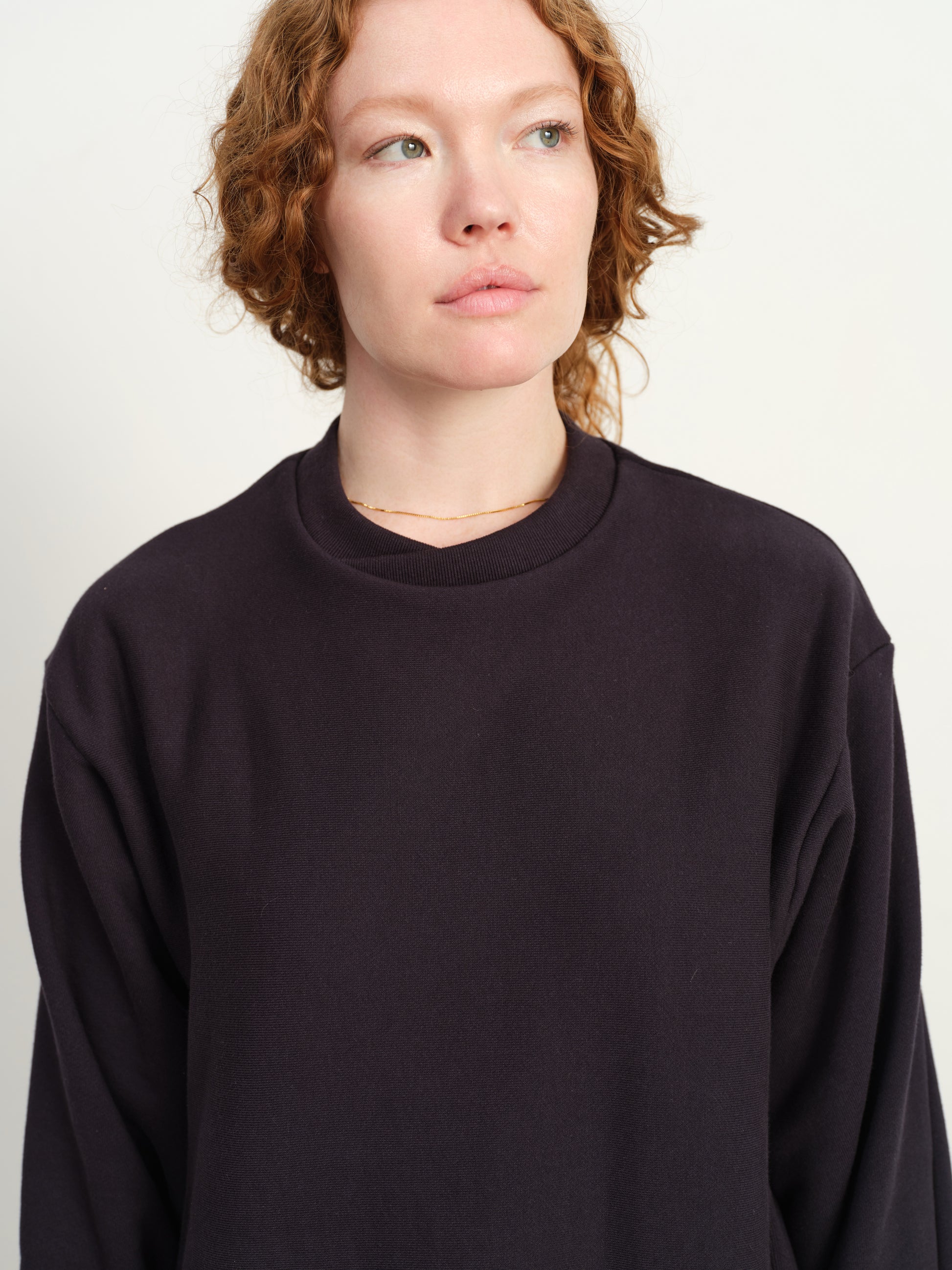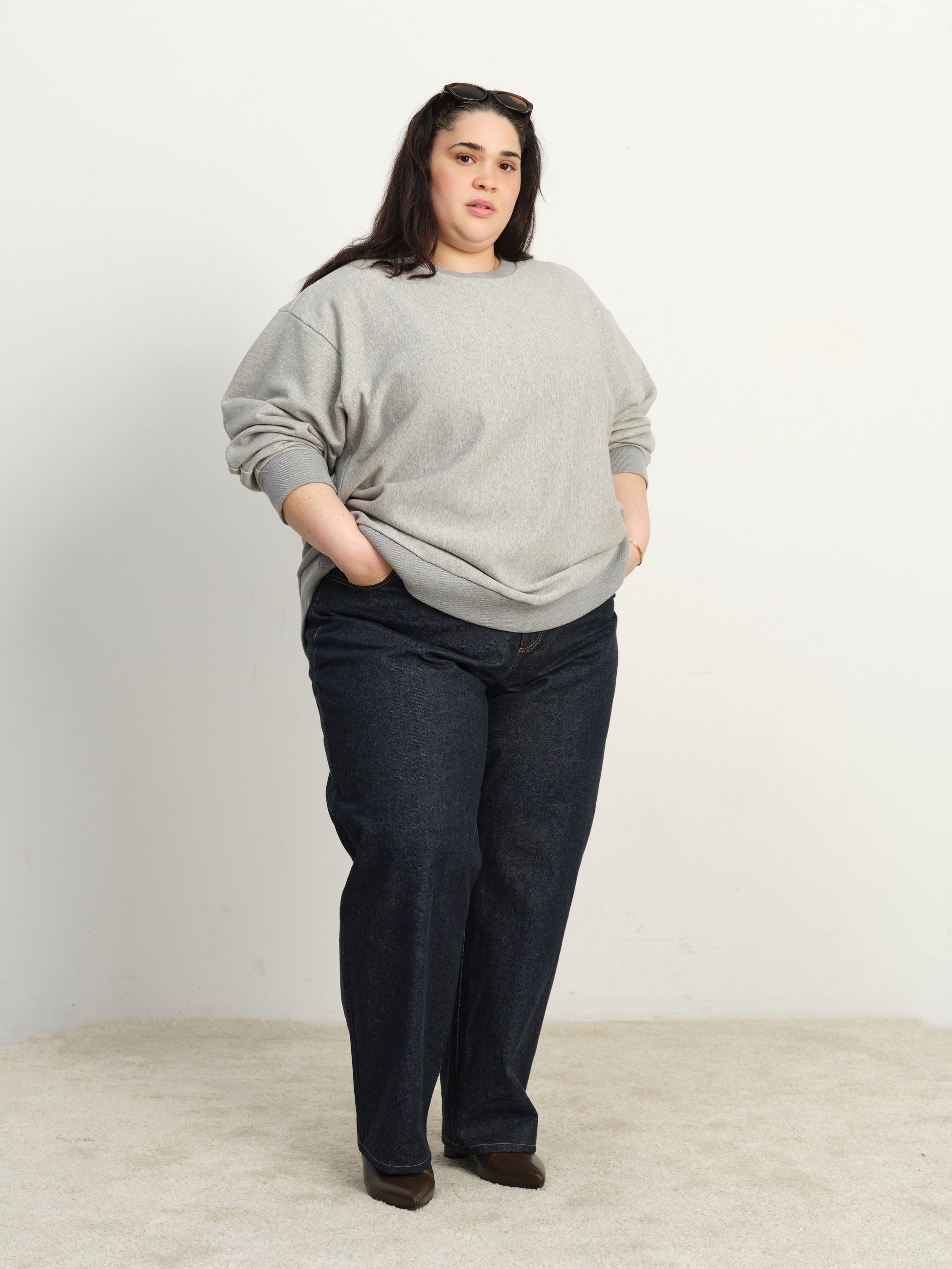 Kate is wearing a size S from the DD size range in a 11oz 100% Cotton French Terry from Capital Fabric Supply in Dark Indigo. Her measurements are : 34"/27"/38" at 5'8".