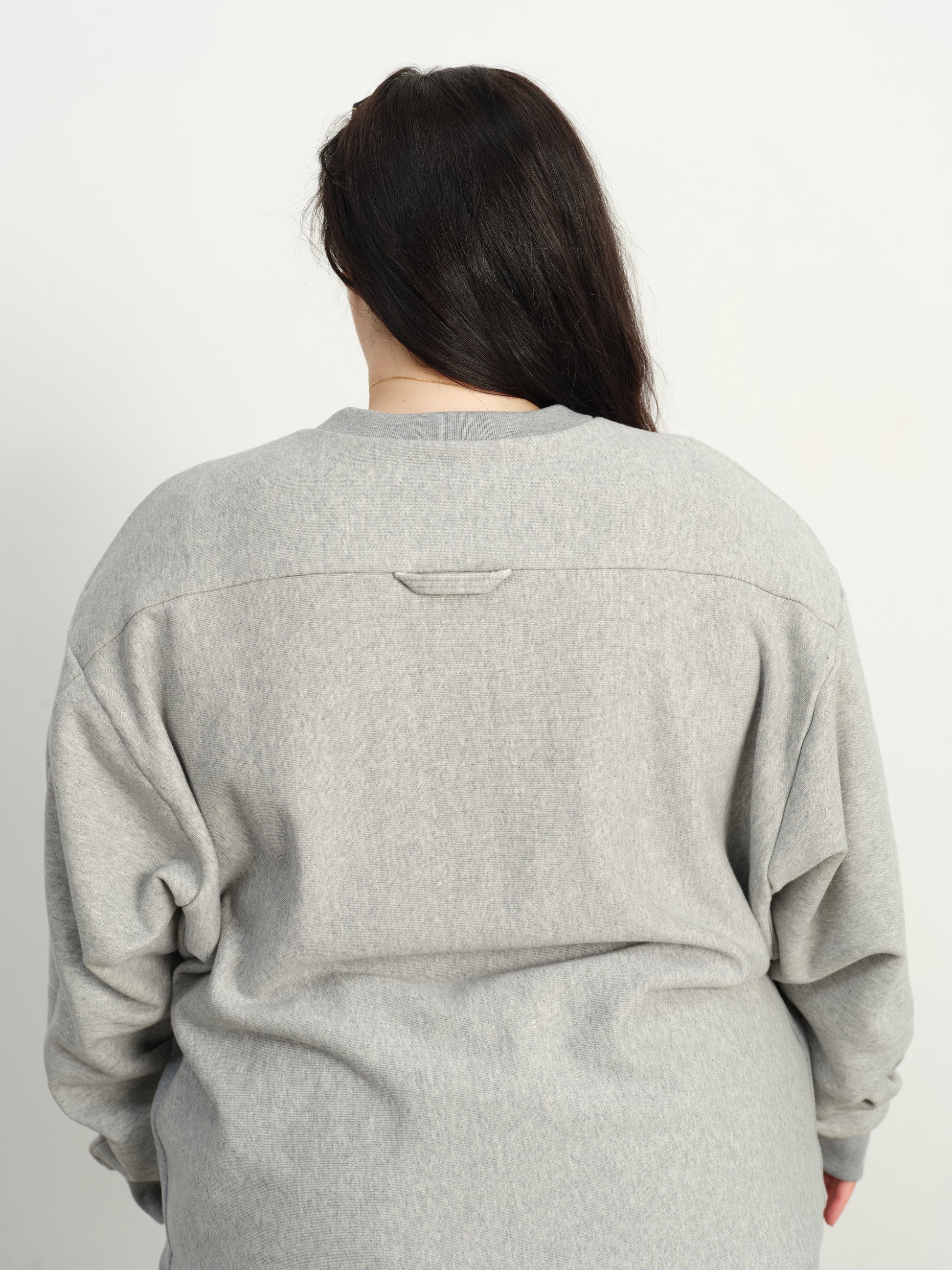 The Calvin takes its cues from old collegiate ones, the kind that look better the more you've lived in them. A back yoke and locker loop nod to its gymnasium-era ancestors, while the overlapped neckband adds a small but thoughtful detail that lets it step easily out of the gym. It's oversized in a deliberate way and cut on the cross grain for added horizontal textures. Heritage-minded: sturdy, comfortable and the sort of sweatshirt that feels familiar immediately. Like you've inherited it from a very cool uncle who always had the best stuff.