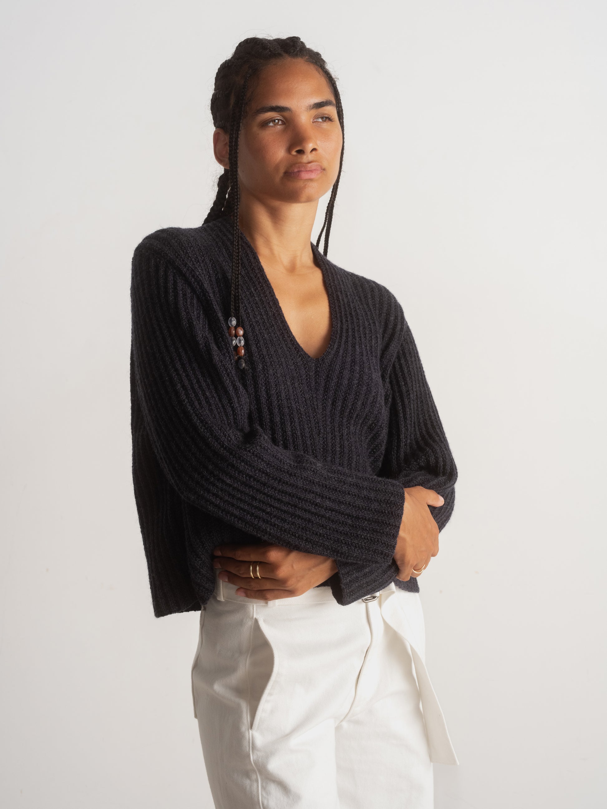 An everyday essential you’ll keep reaching for when you’re not in the mood to overthink what to wear. A deep vee and wrapped shoulders on a boxy body that pairs just as well with jeans as it does with a slinky skirt. It layers easily, stands on its own and if you’re feeling clever, doubles as a scarf tossed over a trench for a bit of proportion play.