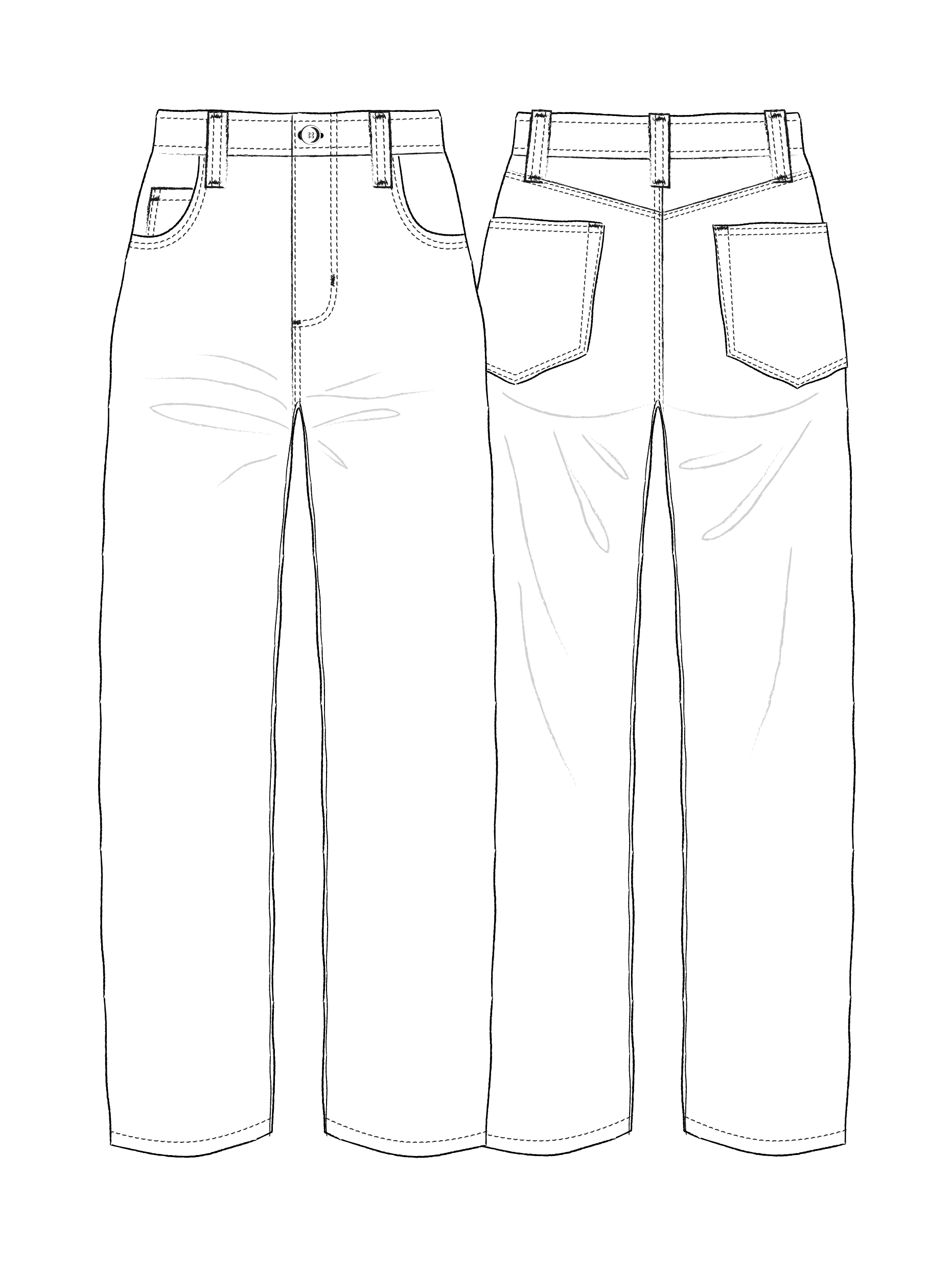 Jeans button: x1, 5/8" (17mm/27L) Jeans zipper: x1, 6" (15.25cm) metal zipper #3 or #4 All purpose thread in matching color Heavy weight topstitching thread Light weight interfacing 1/2 yd (.5 m) Pocket lining 1/2 yd (.5 m) Needles : Denim/Heavy 100/16 or 90/14 or appropriate for fabric Marking Tool Zipper foot Edgestitch Foot, 1/8", 3/8" (optional) Hammer + Awl (optional)