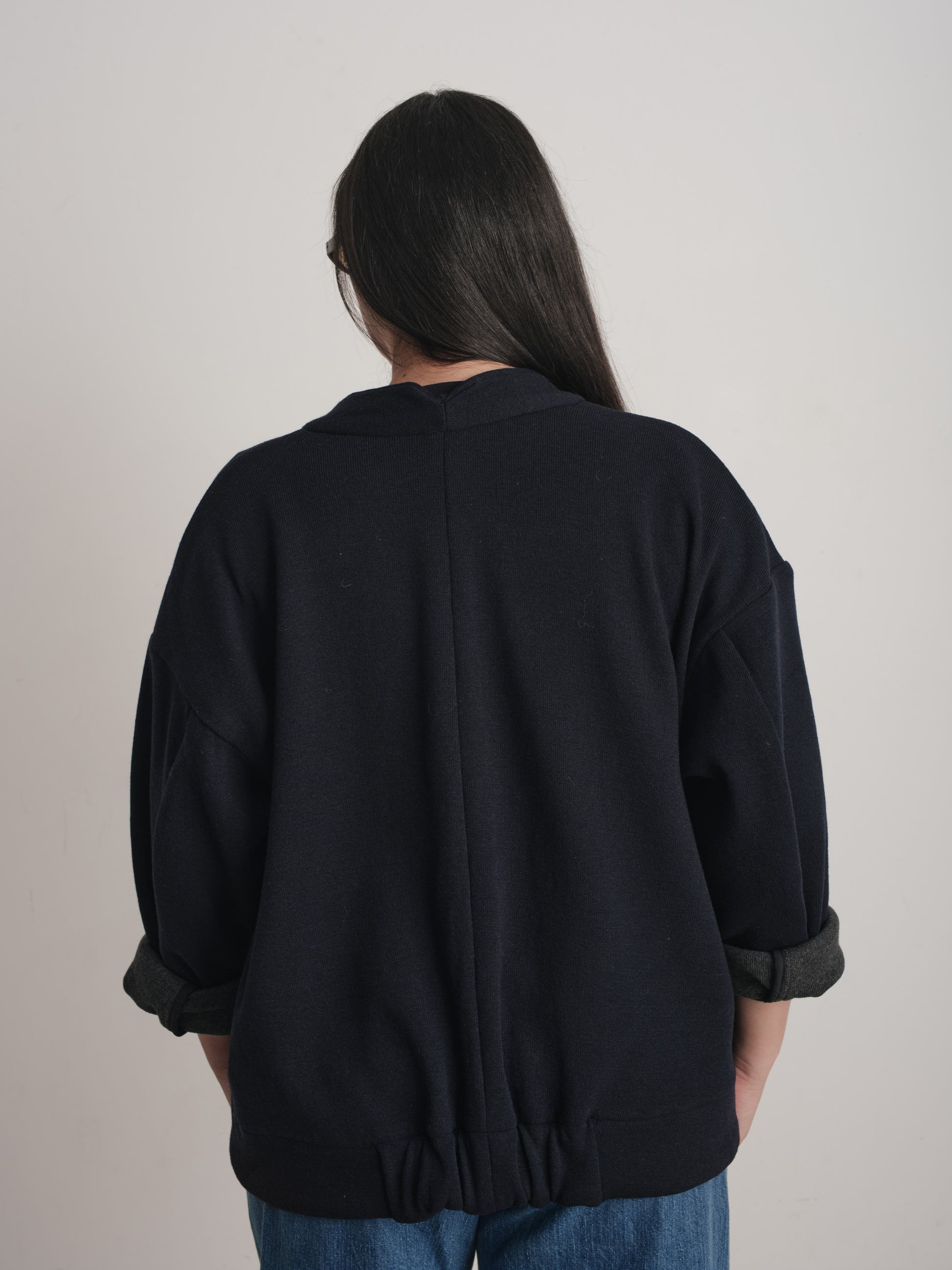 This pattern was created for stable knit fabrics; boiled wool, heavy terry, double face or flexible heavier wovens like mohair, wools, tweeds, etc. However, we believe you can make everything out of anything, feel free to contact us for advice if you're feeling adventurous.